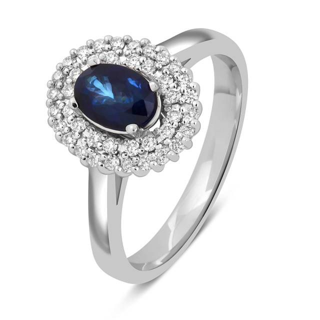 Кольцо из белого золота с бриллиантами и сапфиром (046187)