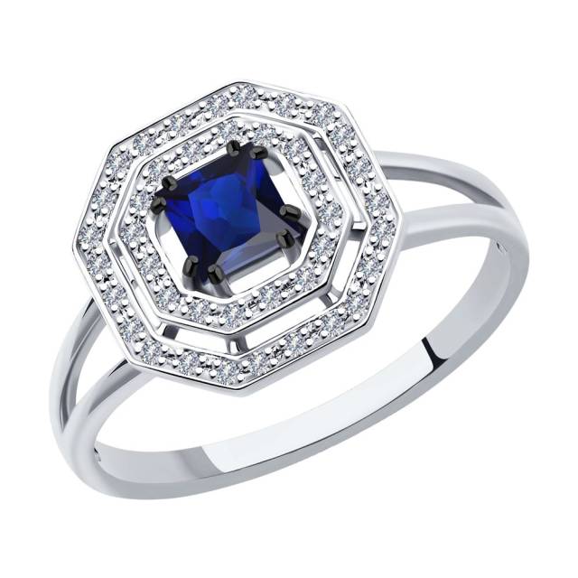 Кольцо из белого золота с бриллиантами и сапфиром (046425)