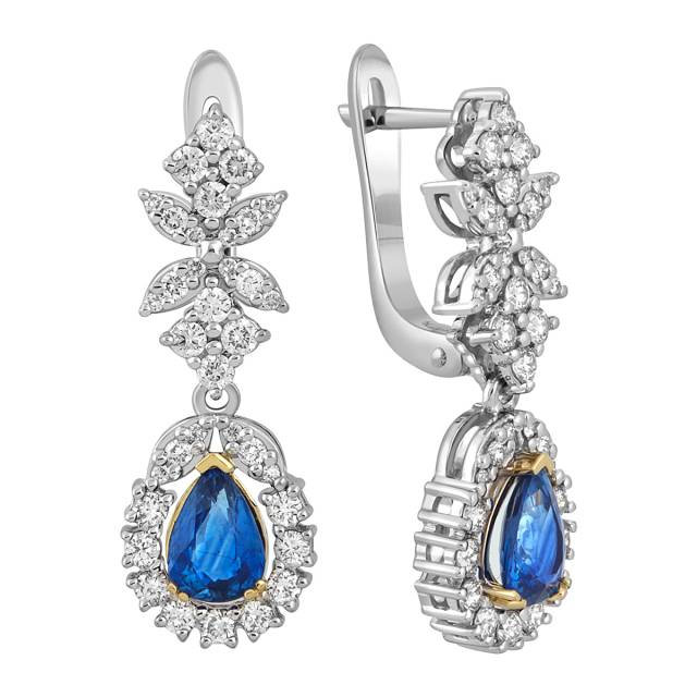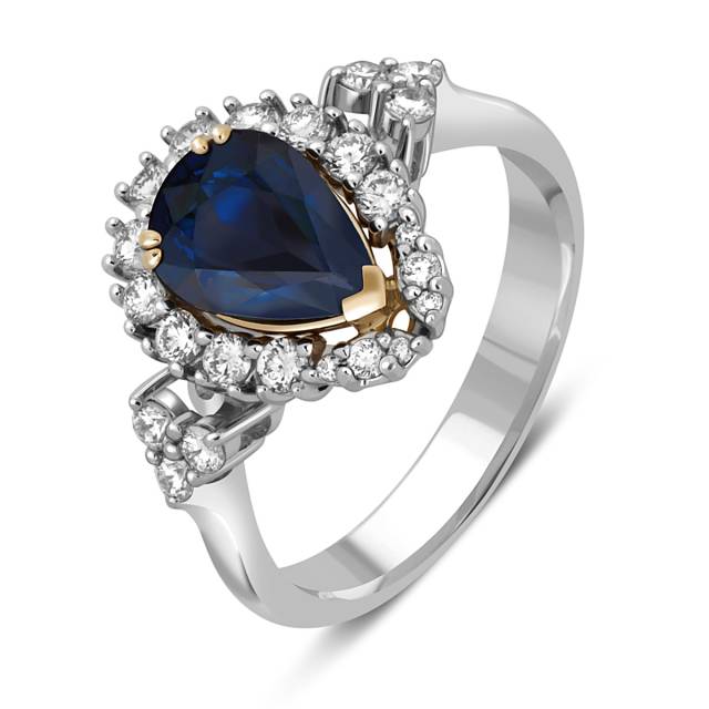 Кольцо из белого золота с бриллиантами и сапфиром (046739)