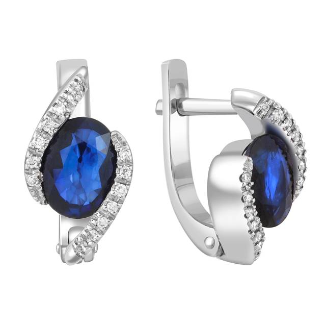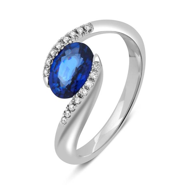 Кольцо из белого золота с бриллиантами и сапфиром (047521)