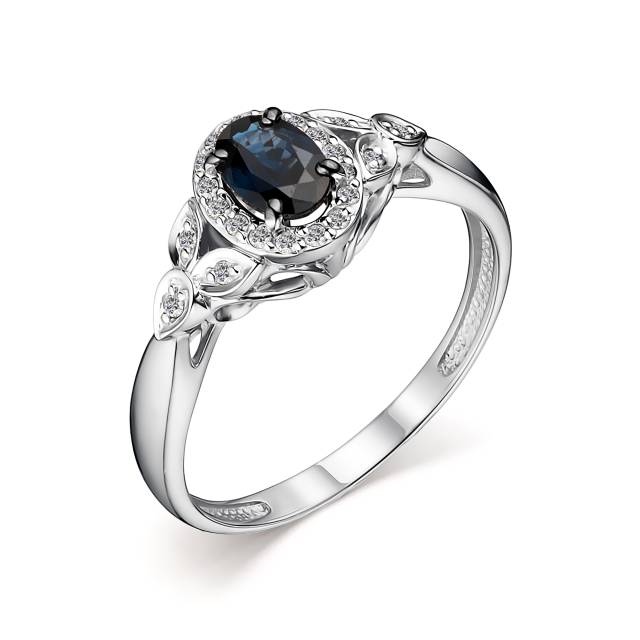 Кольцо из белого золота с бриллиантами и сапфиром (048326)