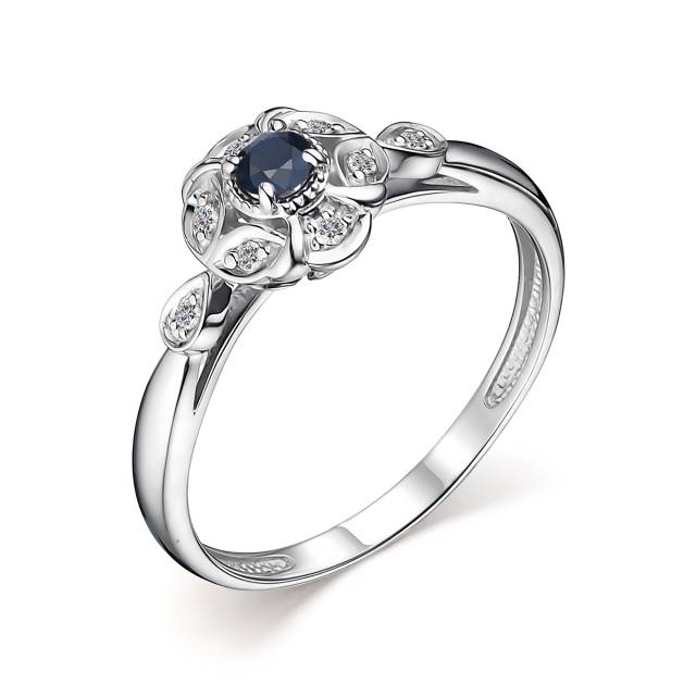 Кольцо из белого золота с бриллиантами и сапфиром (048761)