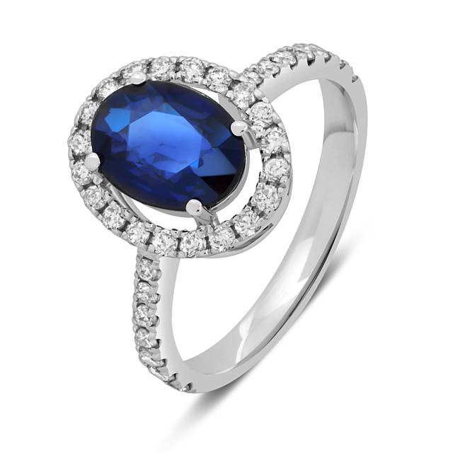 Кольцо из белого золота с бриллиантами и сапфиром (049384)