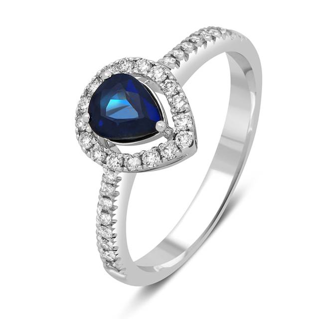 Кольцо из белого золота с бриллиантами и сапфиром (049499)