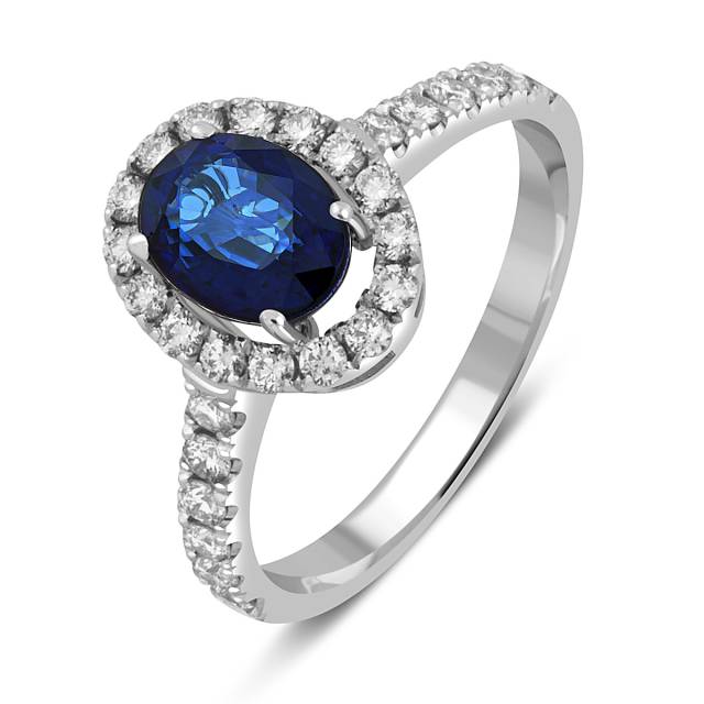 Кольцо из белого золота с бриллиантами и сапфиром (051337)
