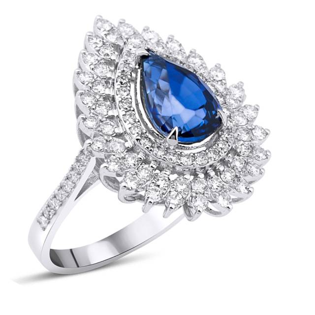 Кольцо из белого золота с бриллиантами и сапфиром (055619)