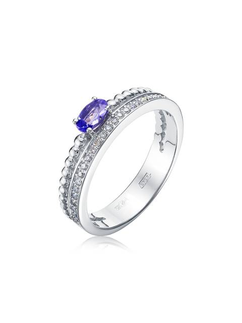Кольцо из белого золота с бриллиантами и танзанитами (050886)