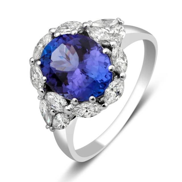 Кольцо из белого золота с бриллиантами и танзанитом (025882)