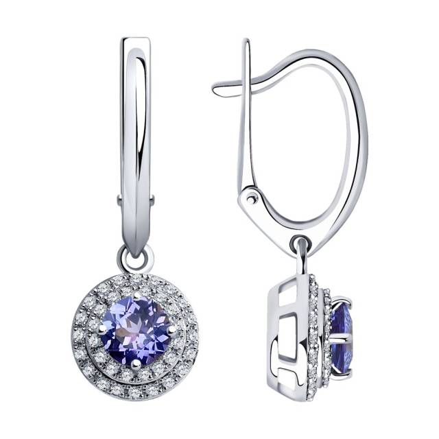 Серьги из белого золота с бриллиантами и танзанитами (043931)