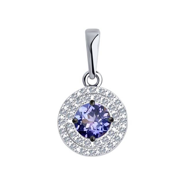 Кулон из белого золота с бриллиантами и танзанитом (043932)