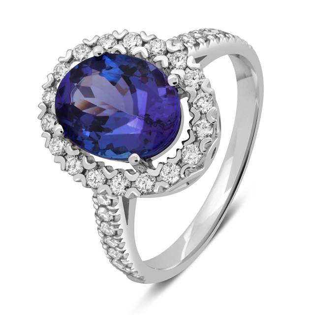 Кольцо из белого золота с бриллиантами и танзанитом (047540)