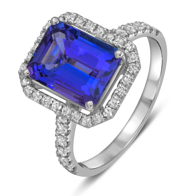 Кольцо из белого золота с бриллиантами и танзанитом (054107)