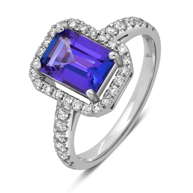Кольцо из белого золота с бриллиантами и танзанитом (054472)