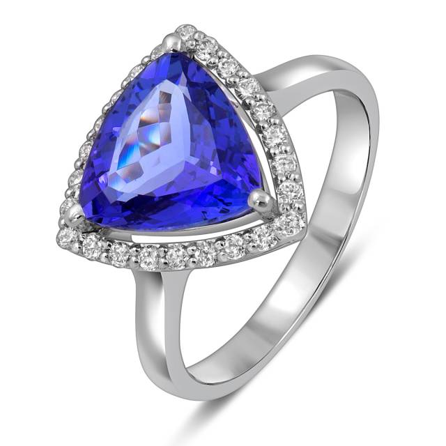 Кольцо из белого золота с бриллиантами и танзанитом (055103)