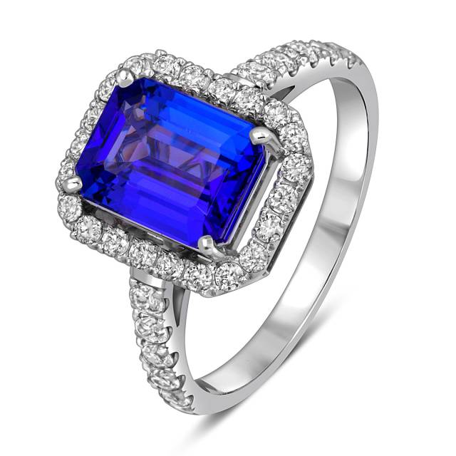 Кольцо из белого золота с бриллиантами и танзанитом (055105)