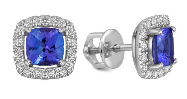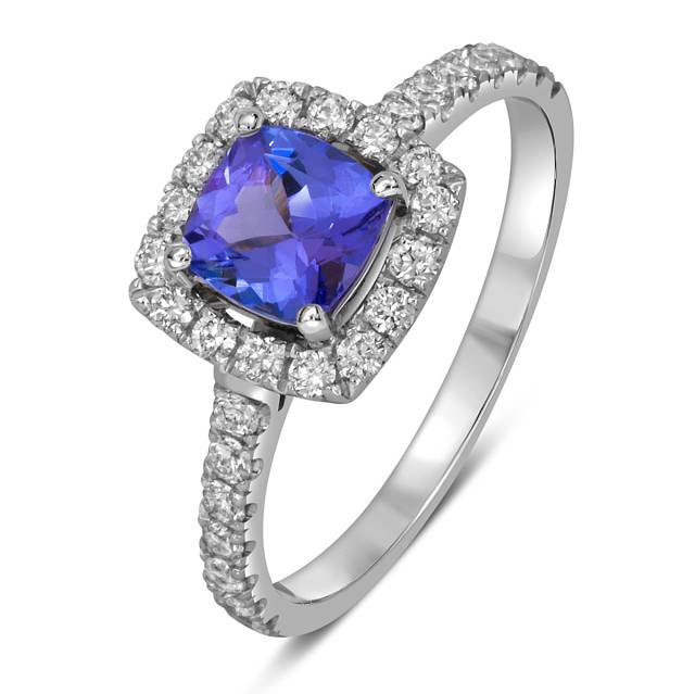 Кольцо из белого золота с бриллиантами и танзанитом (055652)