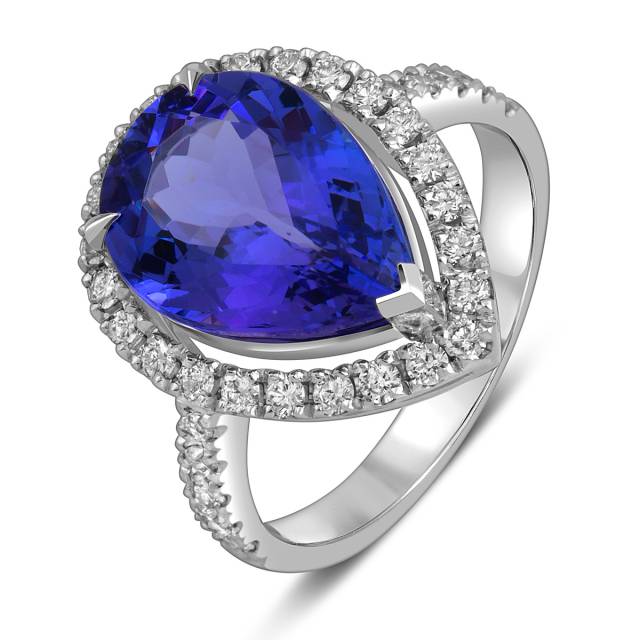 Кольцо из белого золота с бриллиантами и танзанитом (059495)