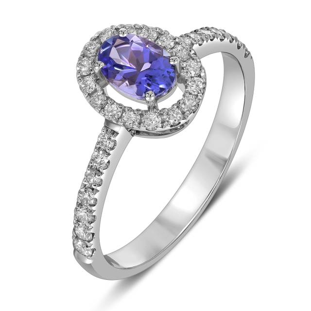 Кольцо из белого золота с бриллиантами и танзанитом (061604)
