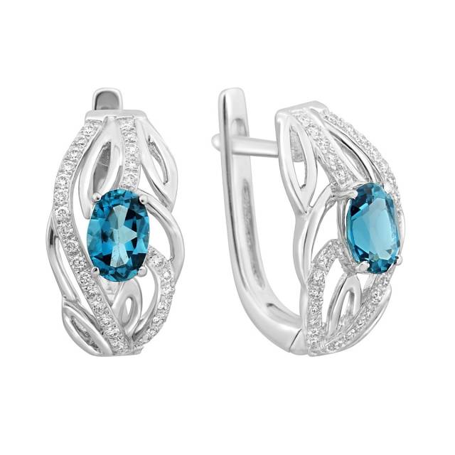 Кольцо из белого золота с бриллиантами и топазом (015106)