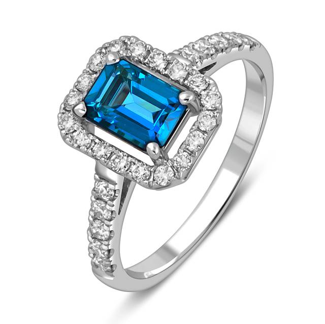 Кольцо из белого золота с бриллиантами и топазом (059113)