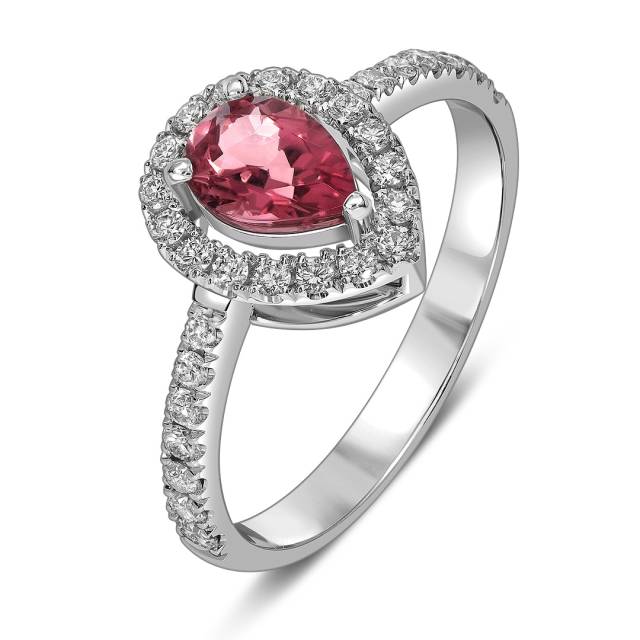 Кольцо из белого золота с бриллиантами и турмалином (062640)