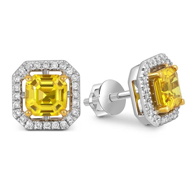 Кольцо из белого золота с бриллиантами и жёлтым сапфиром (050533)