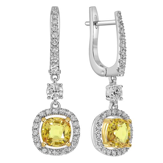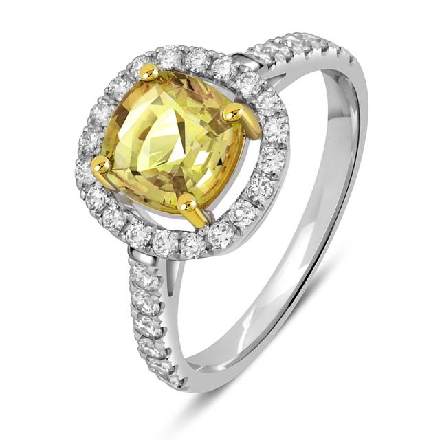 Кольцо из белого золота с бриллиантами и жёлтым сапфиром (050538)