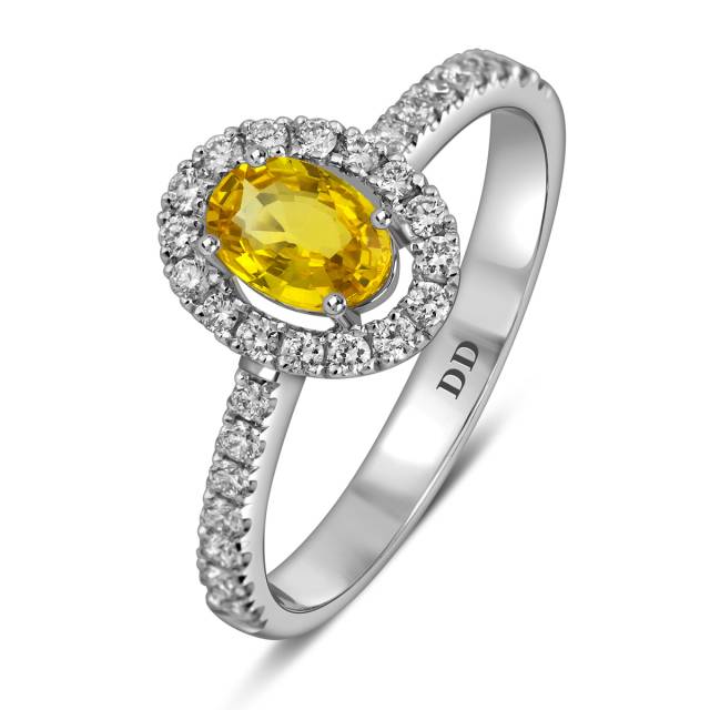 Кольцо из белого золота с бриллиантами и жёлтым сапфиром (062628)