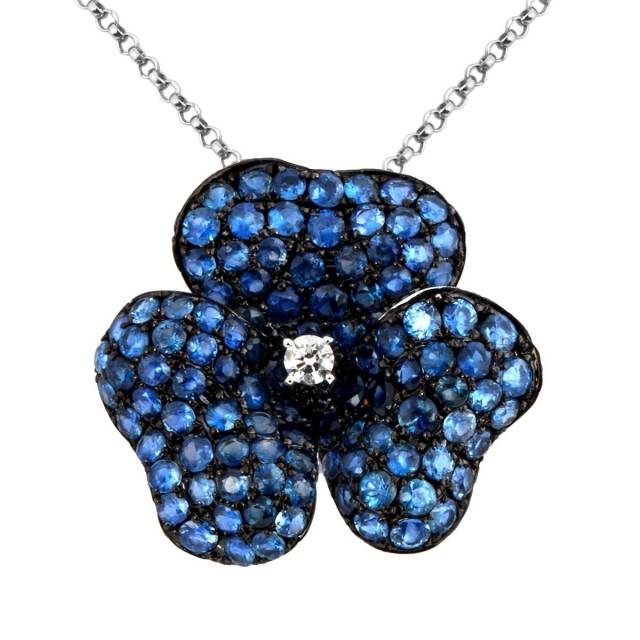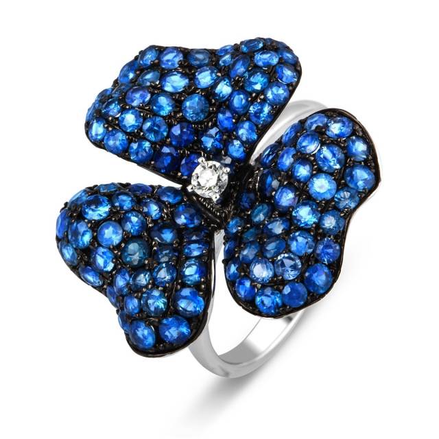 Кольцо из белого золота с бриллиантом и сапфирами (028599)