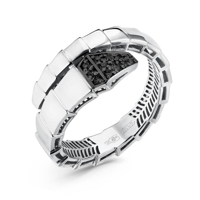 Кольцо из белого золота с чёрными бриллиантами (055835)