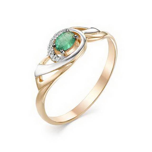 Кольцо из комбинированного золота с бриллиантами и изумрудом (032944)