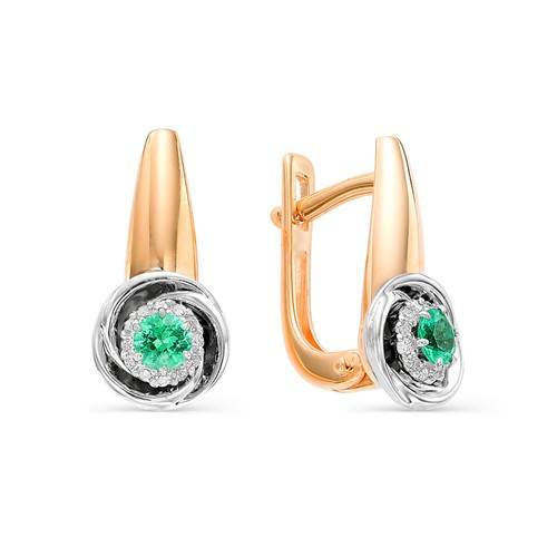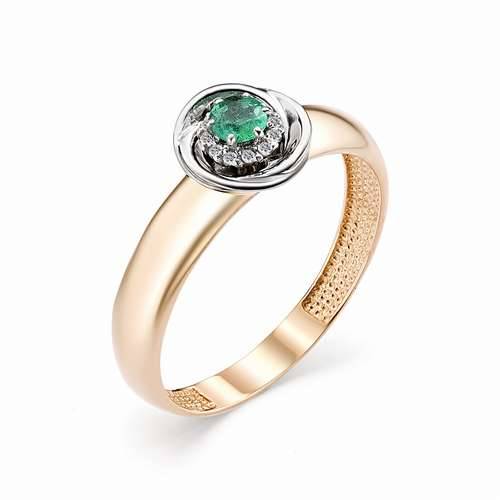 Кольцо из комбинированного золота с бриллиантами и изумрудом (033785)