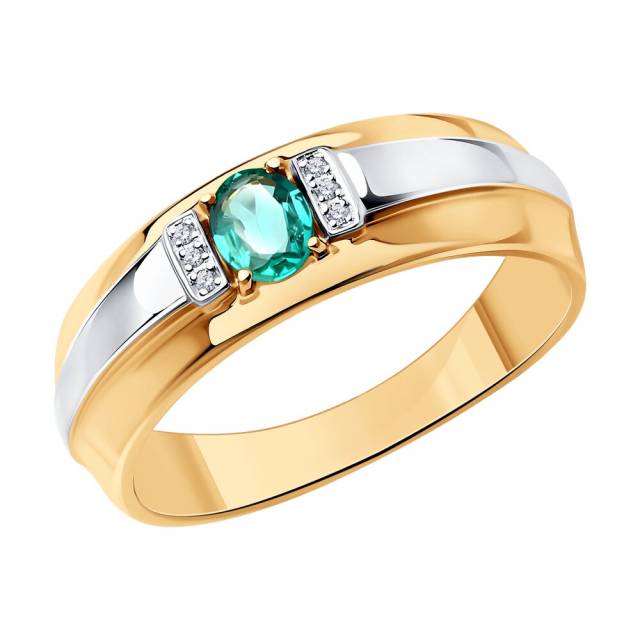 Кольцо из комбинированного золота с бриллиантами и изумрудом (048701)