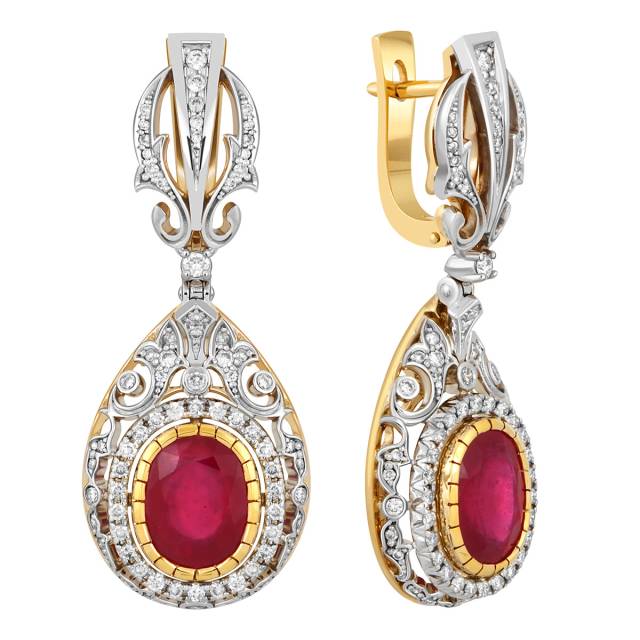 Кольцо из комбинированного золота с бриллиантами и рубином (039877)