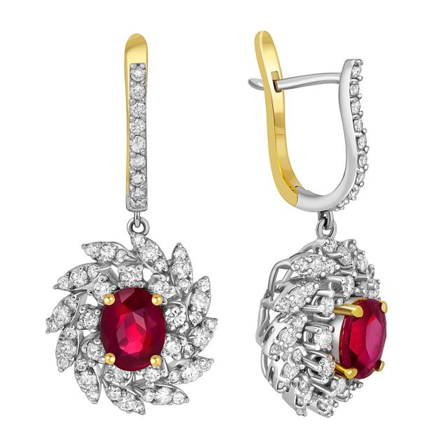 Кольцо из комбинированного золота с бриллиантами и рубином (047593)