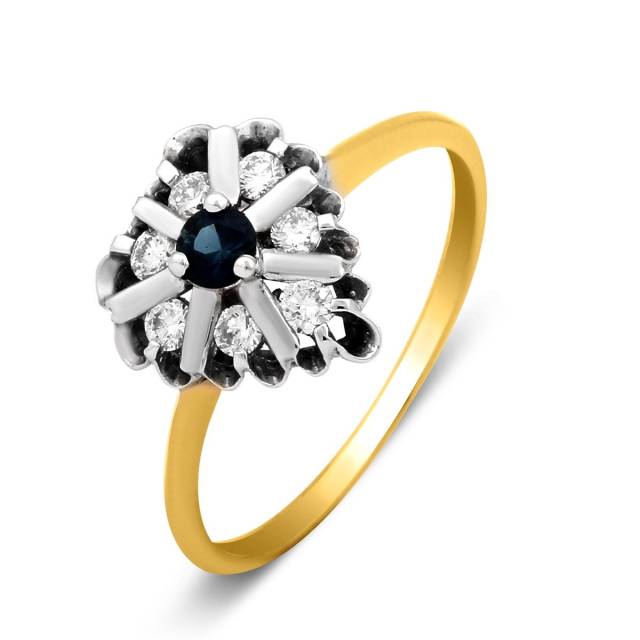 Кольцо из комбинированного золота с бриллиантами и сапфиром (025565)
