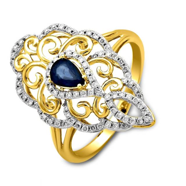 Кольцо из комбинированного золота с бриллиантами и сапфиром (025937)