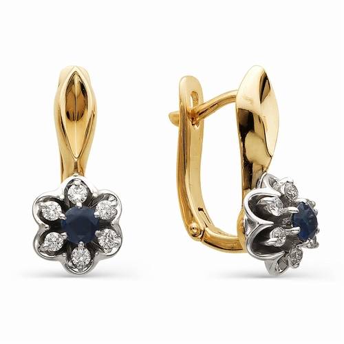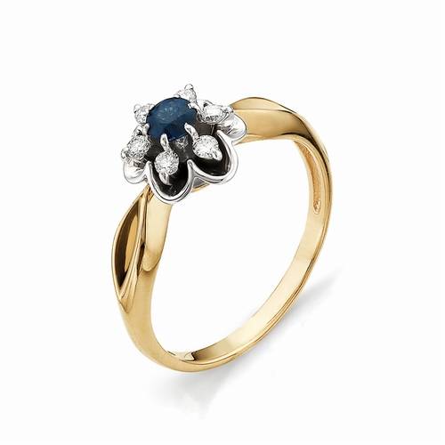 Кольцо из комбинированного золота с бриллиантами и сапфиром (031258)