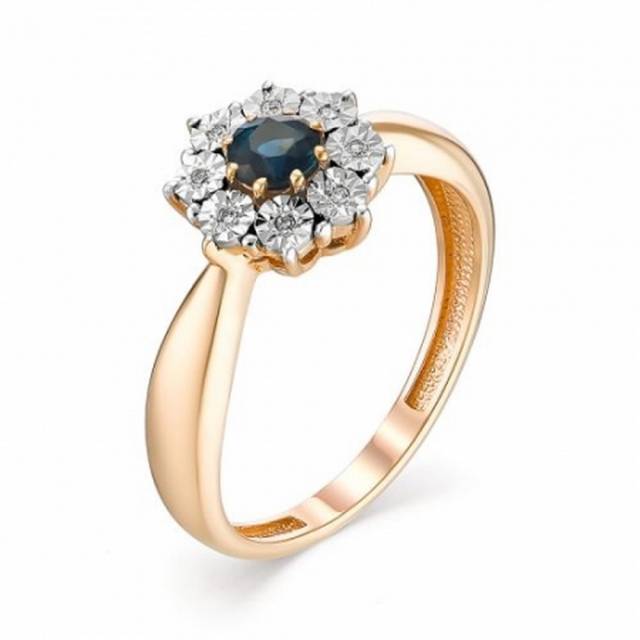 Кольцо из комбинированного золота с бриллиантами и сапфиром (036173)
