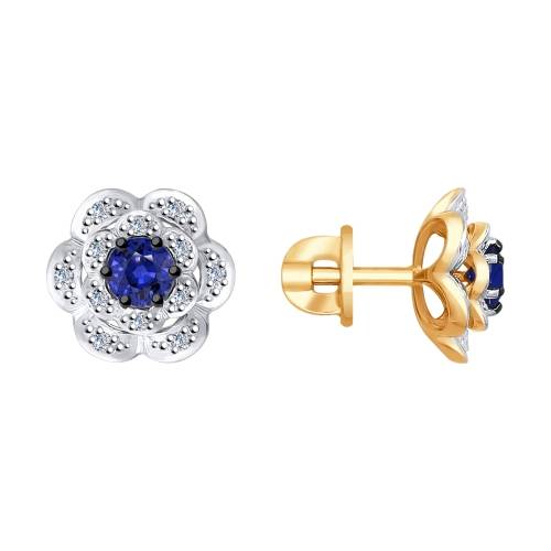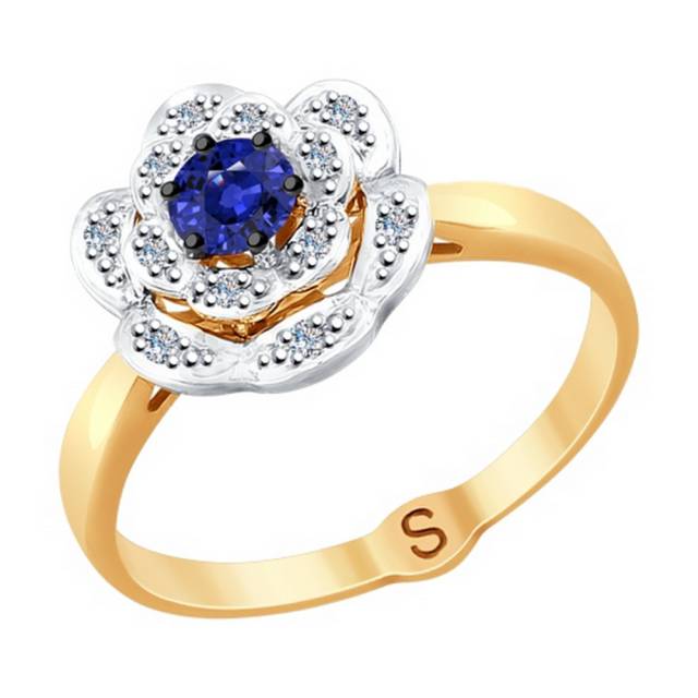 Кольцо из комбинированного золота с бриллиантами и сапфиром (038401)