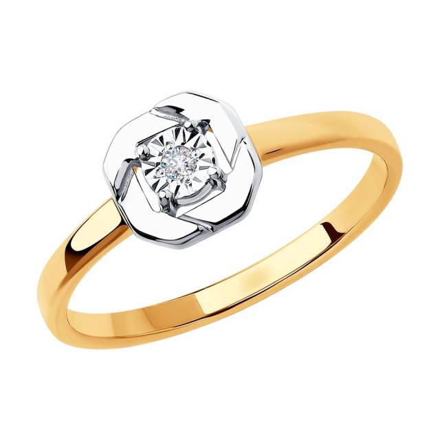 Кольцо из комбинированного золота с бриллиантом (046267)