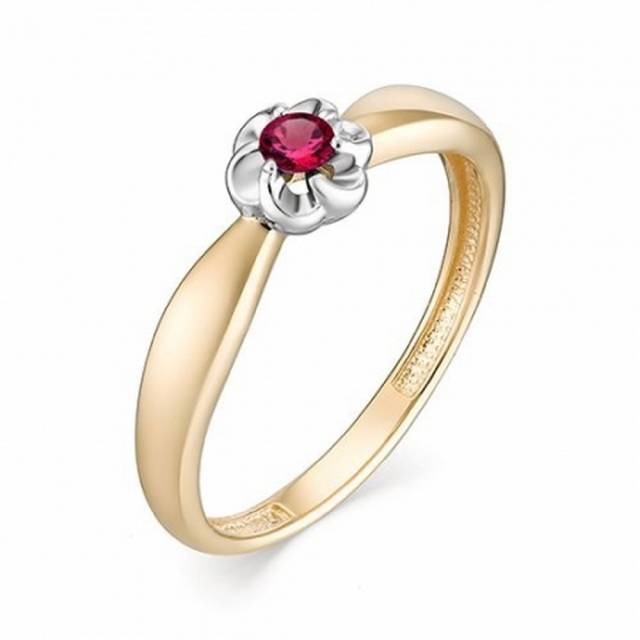 Кольцо из комбинированного золота с рубином (039542)