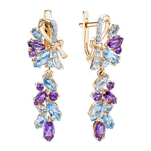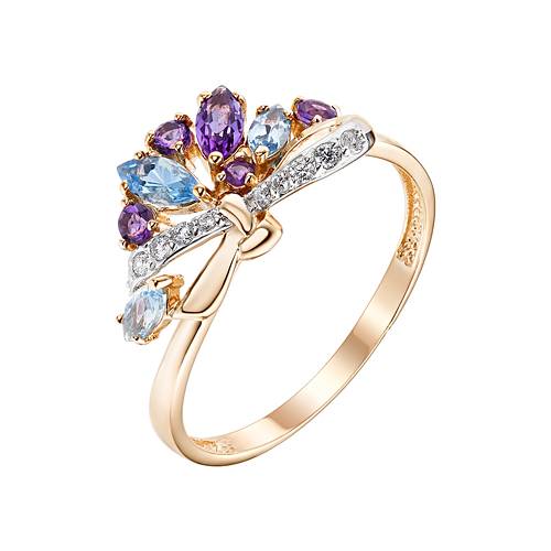Кольцо из красного золота с аметистами, топазами и фианитами (040070)