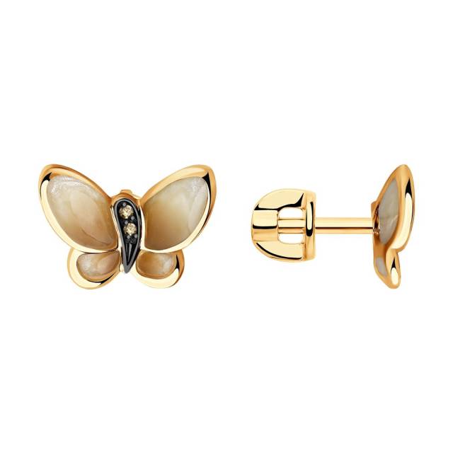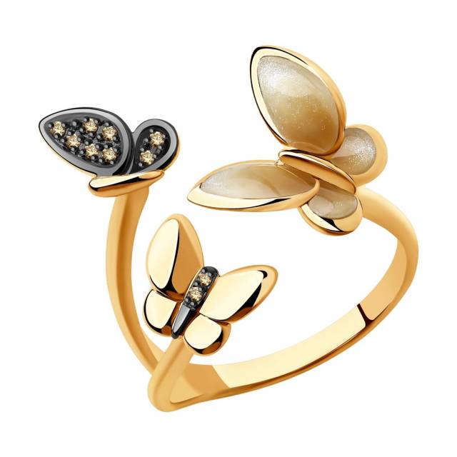 Кольцо из красного золота с бриллиантами и эмалью "Бабочки" (045077)