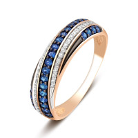 Кольцо из красного золота с бриллиантами и изумрудами (045537)