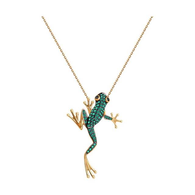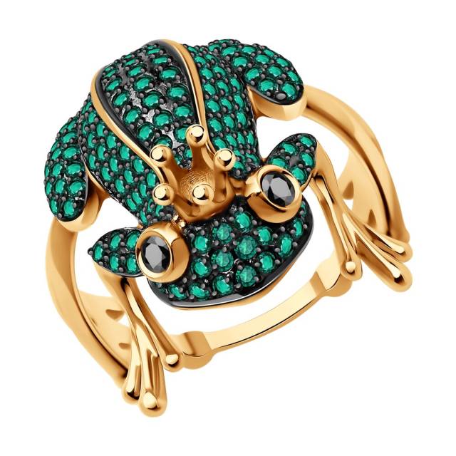 Кольцо из красного золота с бриллиантами и изумрудами (052803)