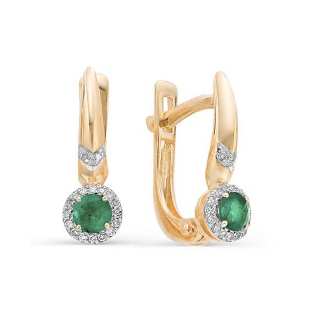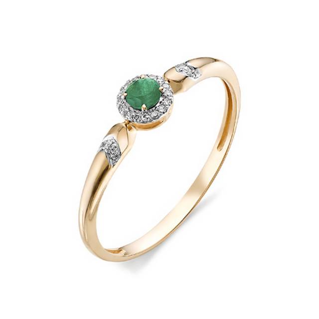 Кольцо из красного золота с бриллиантами и изумрудом (031335)