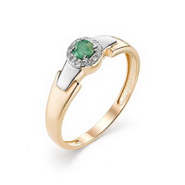 Кольцо из красного золота с бриллиантами и изумрудом (034398)