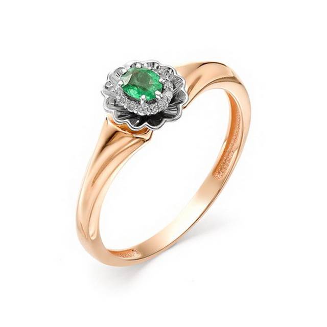 Кольцо из красного золота с бриллиантами и изумрудом (034501)