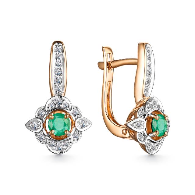 Кольцо из красного золота с бриллиантами и изумрудом (048321)